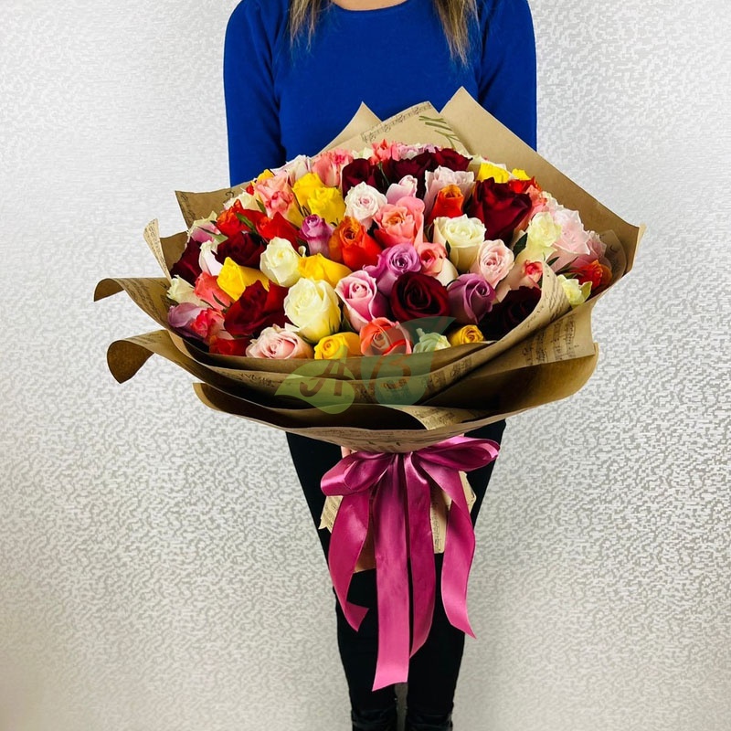 Букет "101 розовая роза" Пинк Флойд (70 см)